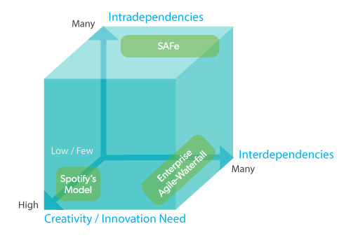 In the framework above, we used three key parameters: intradependencies, interdependencies, and need for creativity and innovation. These parameters are certainly not the only ones to consider when designing a large-scale Agile model for a particular context. The most important thing, however, is that those charged with selecting and creating a successful large-scale Agile approach be aware that there ARE several questions to consider.