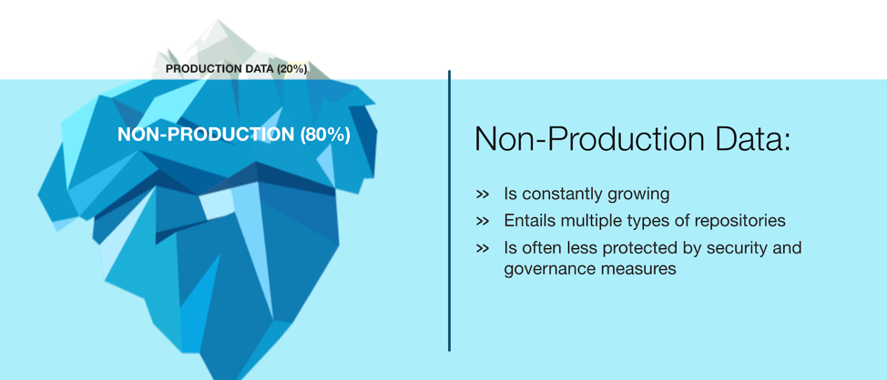 Non-production environments is where software teams develop and test application changes using copies of real customer and company data, and the sheer number and volume of these lower environments is far larger than the highly visible production environments. For every production instance of an application, there are at least 10 copies of non-production. Put simply, it’s the larger part of IT that is not visible to the rest of the world.