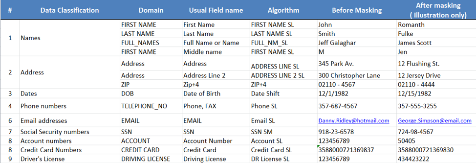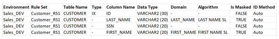 This spreadsheet (below) along with the masking policy spreadsheet above will provide the application SME with the “what” and “how.” An initial check by the application team and resulting feedback can save time during the masking process.