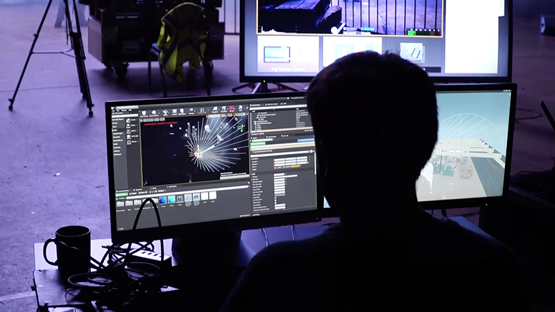 Final Pixel uses Unreal Engine to build virtual sets. The virtual camera tool in Unreal can be programmed to move in sync with the real-world camera with minimal lag, enabling the actors to more authentically interact with the scene that is being displayed on the LED wall.