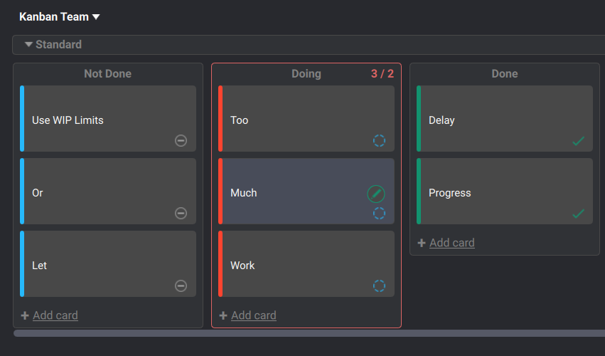 So, context switching comes with a hidden cost that’s charged to your bottom-line productivity. With WIP limits on your Kanban board, team members are able to focus on only a few items at a time — and get more work done.