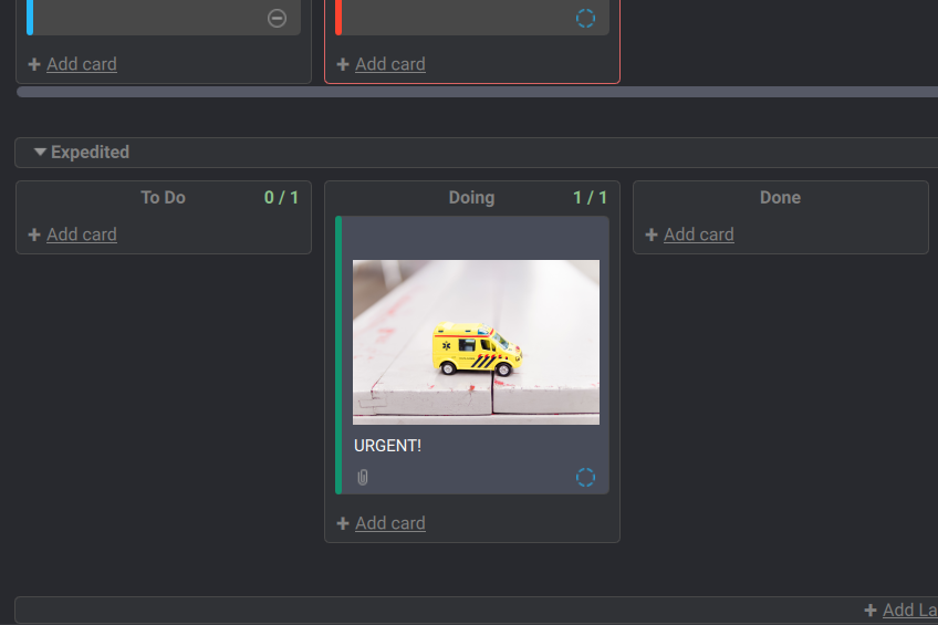 4. Use classes of service. In most real-world circumstances, items arise that need to be dealt with immediately. A common way to handle this is to set up different lanes on your board with classes of service (standard work and expedited work are two examples). Then, you can define WIP limits for each lane separately. Limiting WIP of the “Expedited” lane to just one (a common practice) tells stakeholders you don’t accept more than one urgent task at a time.