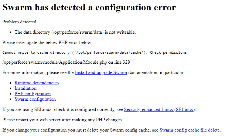 Swarm will probably run on any Linux distribution based on RHEL 7, 8, or 9. Swarm includes binary versions of P4PHP, the Perforce extension for PHP. This P4PHP dependency typically sets the limit to what Linux distributions you can install Swarm on.