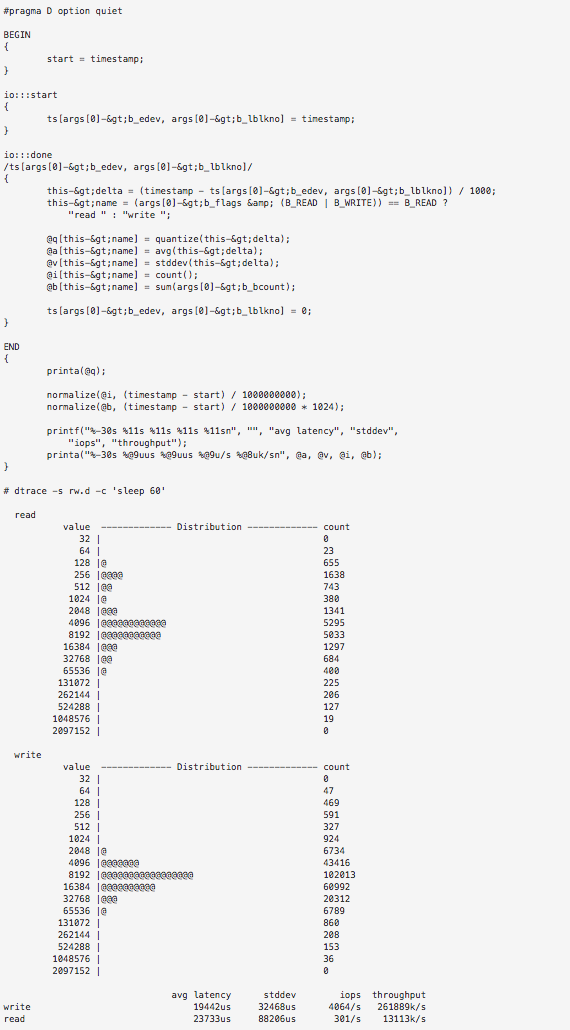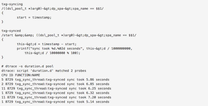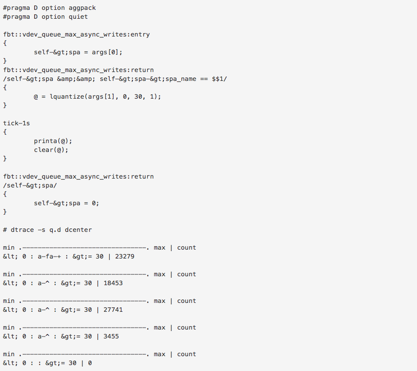 In this post I'll cover performance analysis and tuning ZFS — using DTrace of course. These details are intended for those using OpenZFS and trying to optimize performance — if you have only a casual interest in ZFS consider yourself warned!