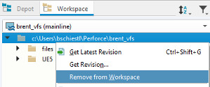 Step 2: Create a new workspace, or sync your existing workspace back to revision 0. For existing workspaces, context-click the workspace root in the workspace pane and choose the “Remove from Workspace” option to sync your workspace back to revision 0.
