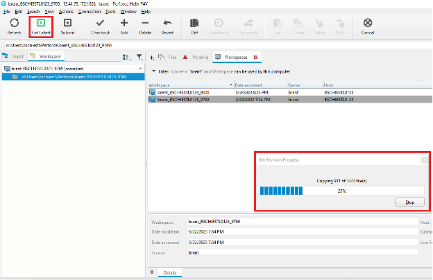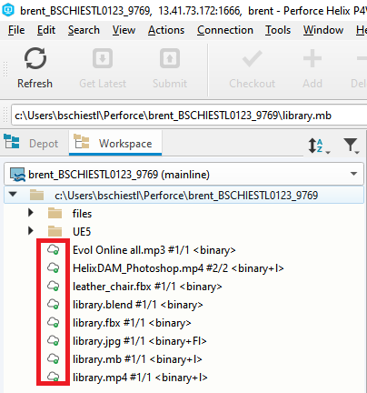 Step 4: Once the workspace is created, initiate a “Get Latest” button and watch as only file metadata is synced from the Helix Core server.