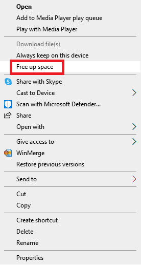 Step 6 (optional): Right-click the file that was downloaded in step 5 and choose the “free up space” option to remove the file content and only retain the file metadata.